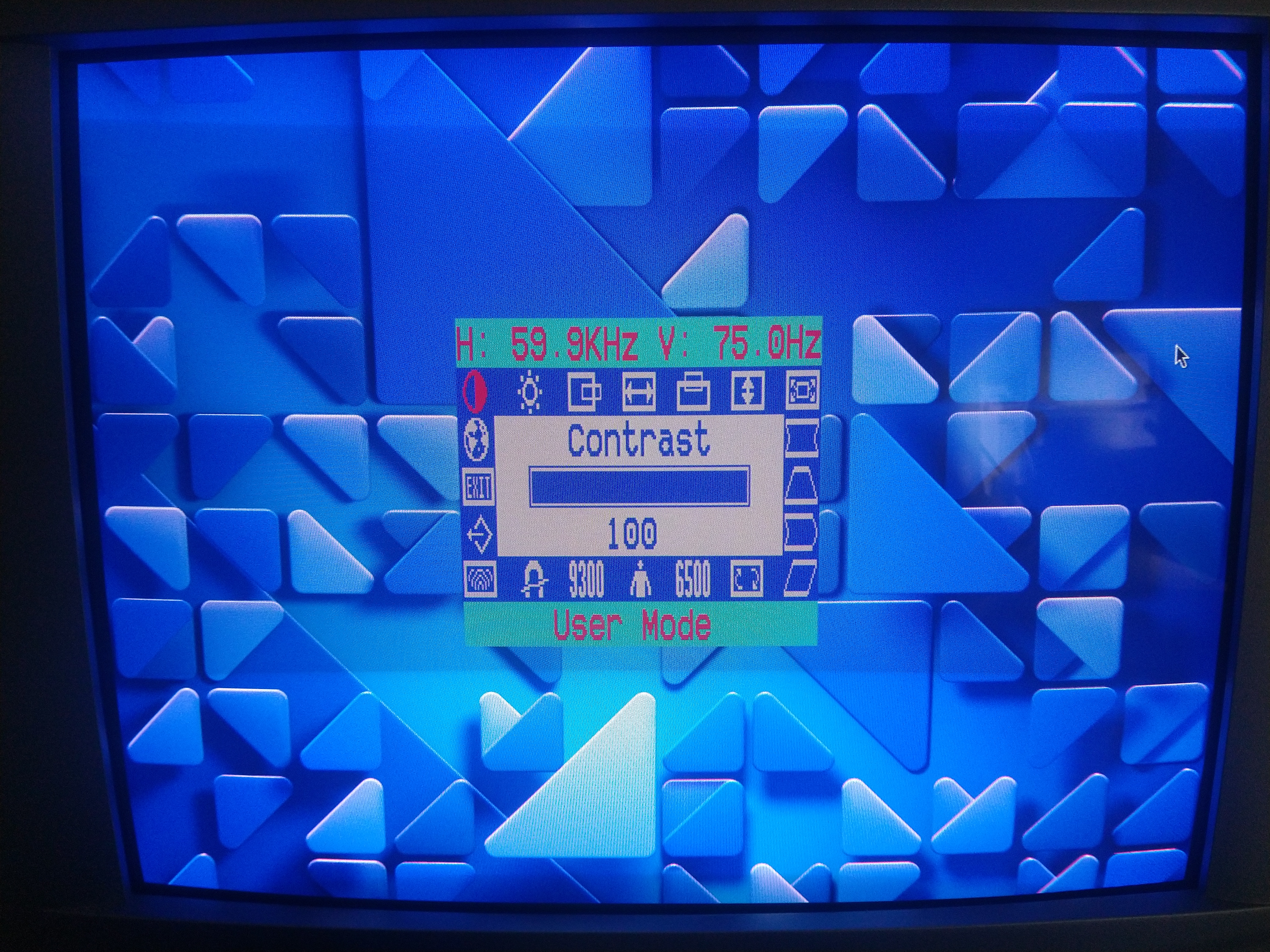 The monitor menu, showing it's running at 75Hz. Crazy to think even this technology was able to support refresh rates higher than 60Hz.